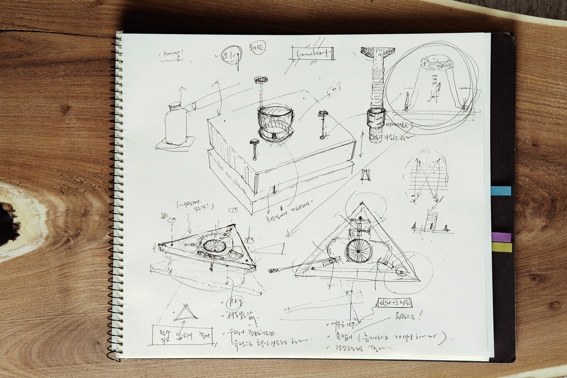 같이 일했던 디자이너 형의 노트가 생각납니다. 그의 노트를 보면 단지 끄적이는 종이라기보다는 아이디어를 전개하기 위한 도구로서 작용하고 있다고 느껴집니다. 정확한 분류와 정보의 서열, 순서 등. 자신의 생각을 일단 끄집어내서 노트 위로 옮겨놓고 그것과 마주하고 대화하고 있는 느낌. 자신의 생각과 대화를 할 수 있게 해주는 스마트한 애플리케이션 같았어요.